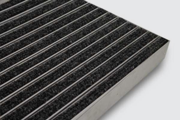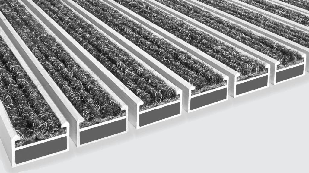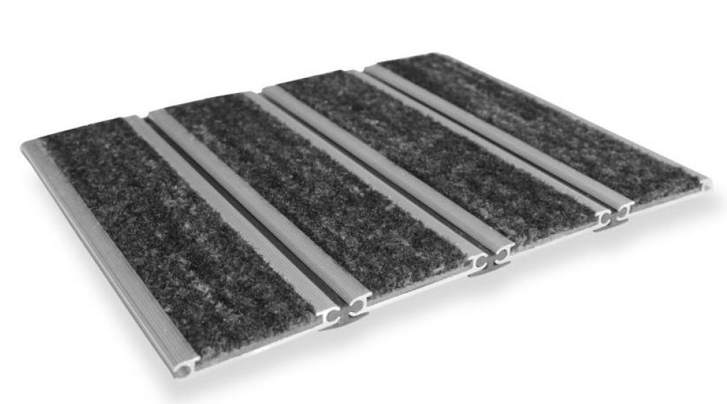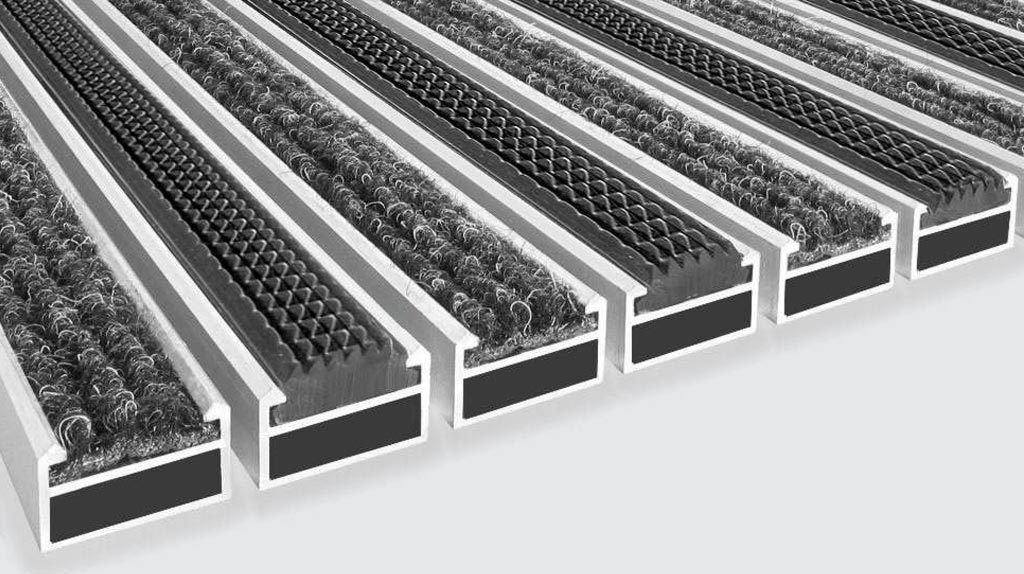 Ofrecemos felpudos de acceso modulares con base de aluminio. Se trata de perfiles de aluminio con distintos materiales en la parte superior. Existen modelos adaptados a cualquier frecuencia de paso y carga (hasta 3000 kg.) y tipo de limpieza requerida (polvo fino, mediano o grueso, humedad, etc.).