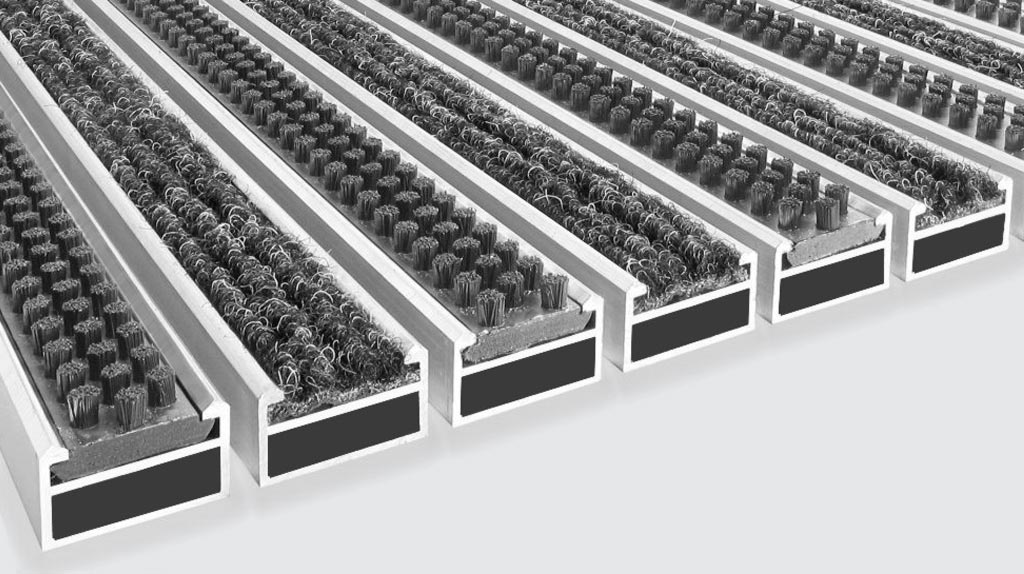 Según las necesidades de cada caso, los felpudos pueden estar formados de bandas de distintos materiales: de moqueta textil, con púas de goma, o bandas de goma texturada. Según se trate de zonas de acceso a edificios o zonas interiores, y según el tipo de condiciones y usos, os recomendaremos un tipo u otro de superfície, o la combinación de franjas de distintos materiales.