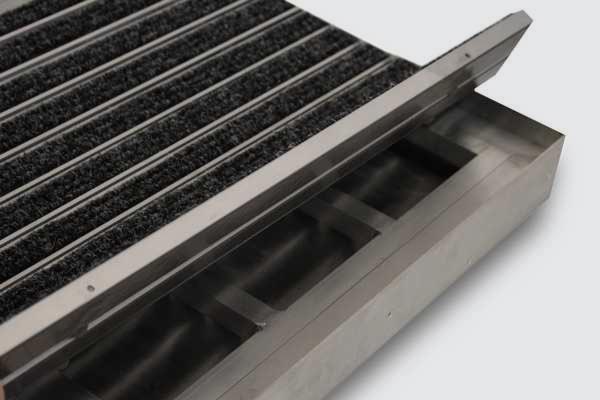 Para felpudos en zonas de acceso con suciedad, existen modelos con espacio inferior donde se recoge el polvo y partículas.