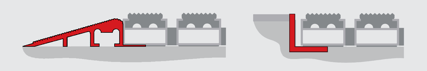 La mayoría de modelos se montan sobre un marco de aluminio o acero inoxidable empotrado en el suelo, pero también existen modelos extrafinos o con rampa que no requieren modificar el pavimento.
