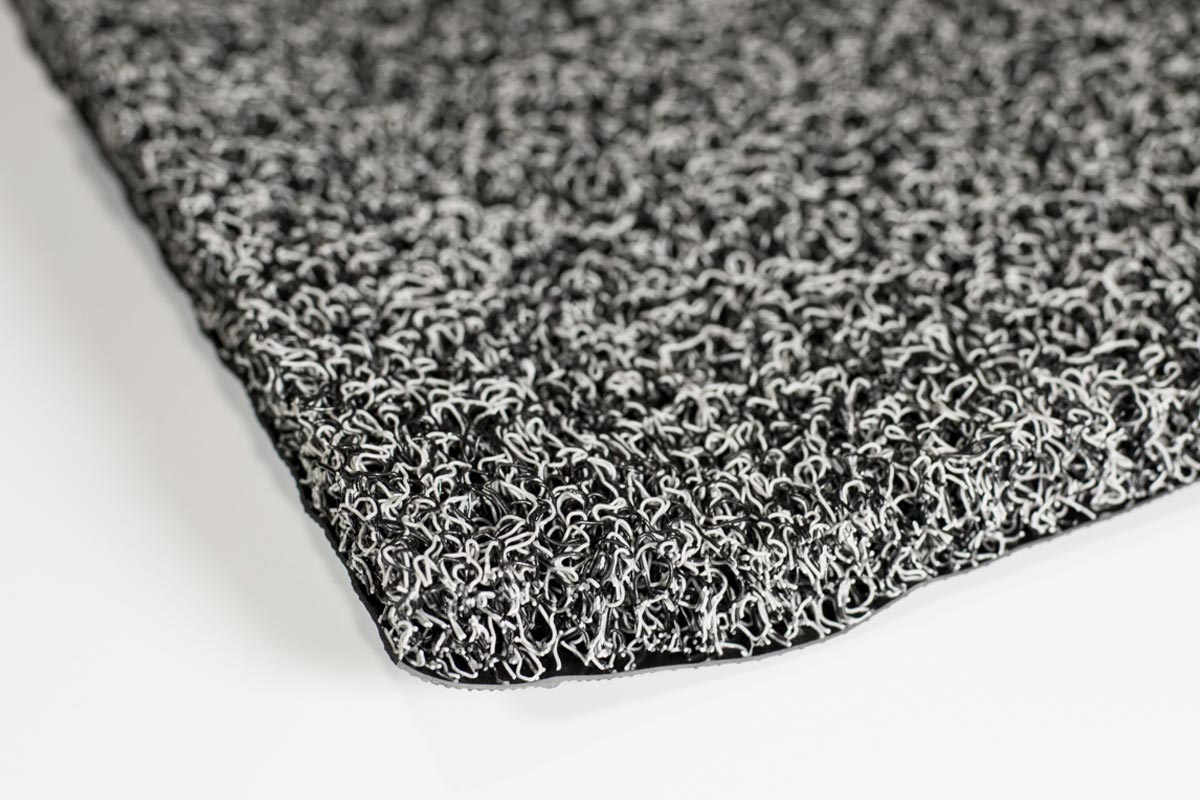 Eficaz: retém o pó e o barro dos sapatos graças à sua composição interna de filamentos de vinil entrelaçados em forma de cachos. Isso permite que a sujidade e a água se depositem diretamente no piso.